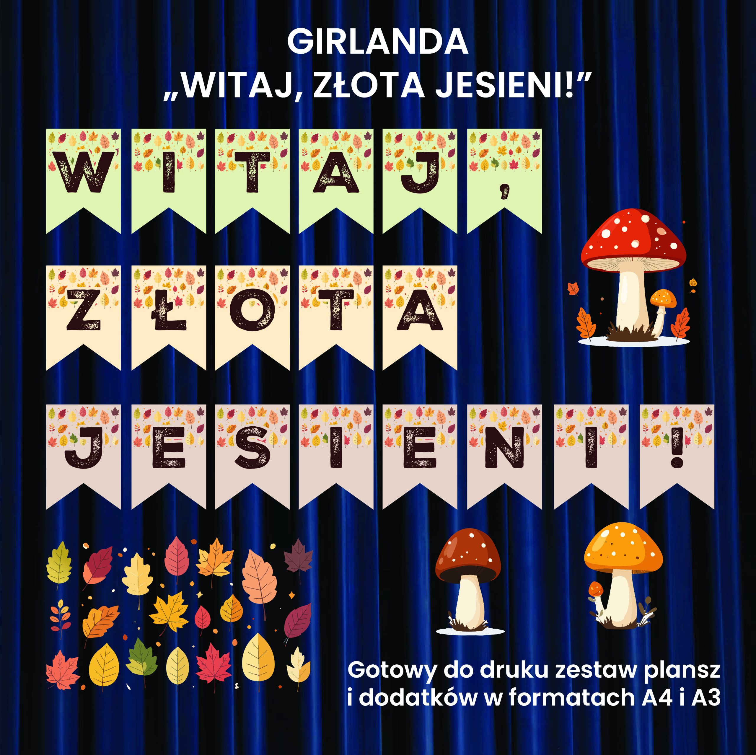Powitaj najpiękniejszą porę roku w swojej sali dzięki dekoracyjnemu napisowi „Witaj, Złota Jesieni!”. Materiał przygotowany w formacie PDF i dostępny w dwóch rozmiarach do druku – A4 oraz A3 doskonale sprawdzi się na tablicy, gazetce szkolnej lub w kąciku tematycznym.
