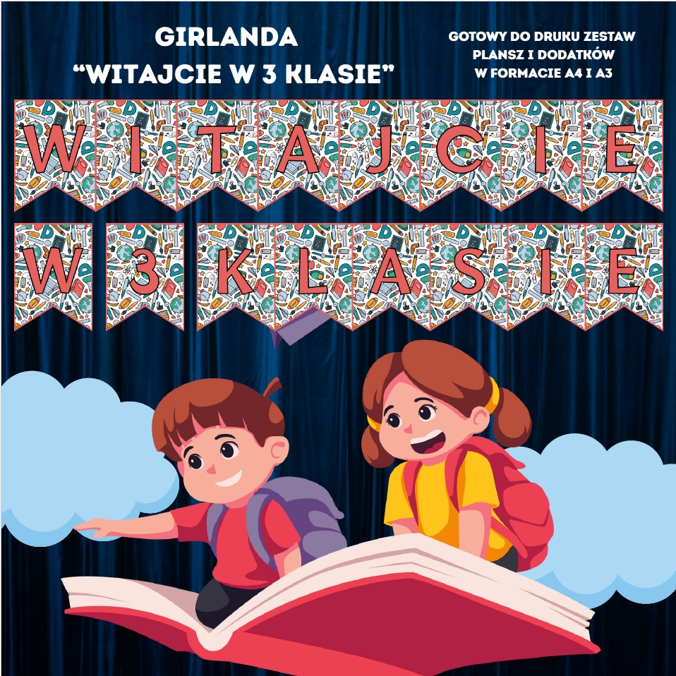 Ta girlanda sprawi, że Twoja sala lekcyjna rozbłyśnie kolorami, a uczniowie z uśmiechem rozpoczną kolejny rok szkolny w 3 klasie – pełen nauki, przygód i pozytywnej energii! ❤️