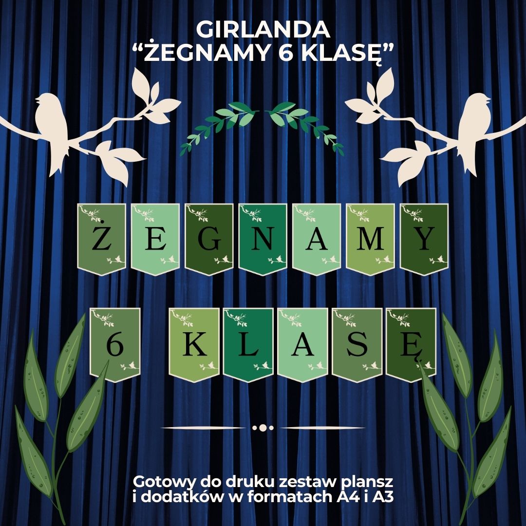 🎉 Girlanda „Żegnamy 6 klasę” – gotowa do druku dekoracja, która wzbogaci uroczystość zakończenia roku szkolnego! Z tą girlandą w kilka chwil zamienisz klasę, salę gimnastyczną czy szkolny korytarz w miejsce pełne wspomnień i pozytywnych emocji.