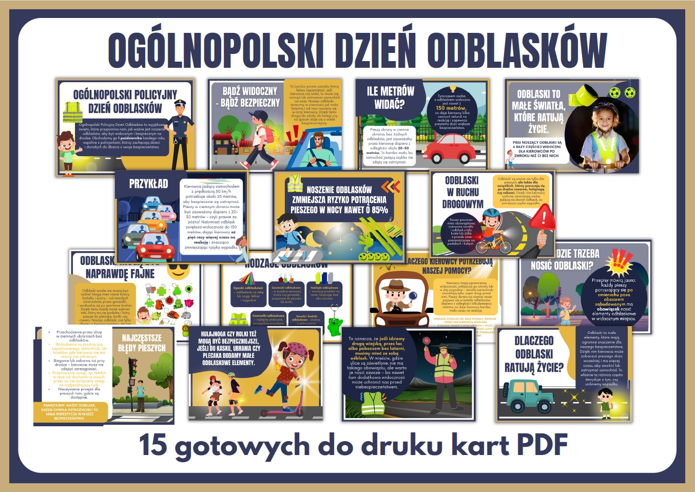 Podczas Ogólnopolskiego Policyjnego Dnia Odblasków policjanci prowadzą działania edukacyjne, rozdają odblaski, organizują spotkania z dziećmi i młodzieżą oraz przypominają, że zgodnie z przepisami piesi poruszający się po zmierzchu poza obszarem zabudowanym muszą mieć widoczne elementy odblaskowe.