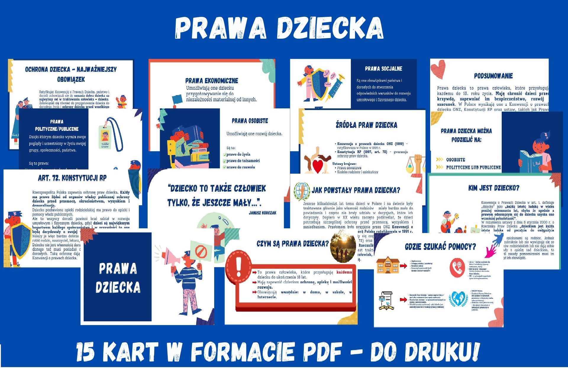 🖼️ Nasz zestaw tematycznych grafik to aż 15 bogato ilustrowanych kart PDF, które możesz wydrukować i stworzyć z nich efektowną gazetkę w sali, na korytarzu lub w świetlicy. Znajdziesz tu kolorowe plansze z najważniejszymi prawami, inspirujące hasła oraz przyjazne ilustracje dla dzieci w każdym wieku. 🌈