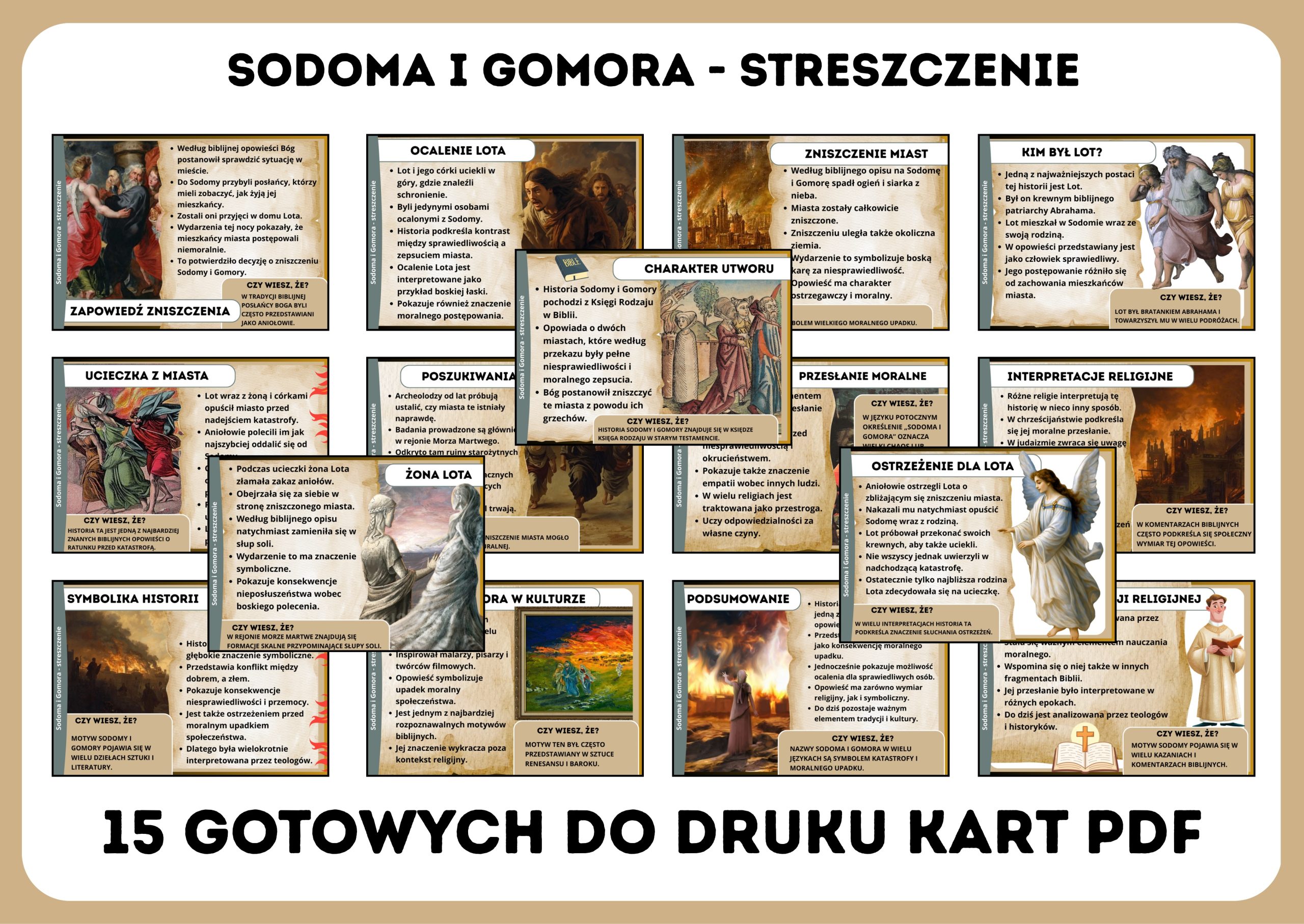 Szukasz ciekawego sposobu na przybliżenie uczniom historii biblijnych i ich znaczenia w kulturze? Gazetka szkolna „Sodoma i Gomora” to gotowy zestaw aż 15 estetycznych kart w formacie PDF, które pomogą w atrakcyjny sposób przedstawić tę znaną opowieść ze Starego Testamentu.