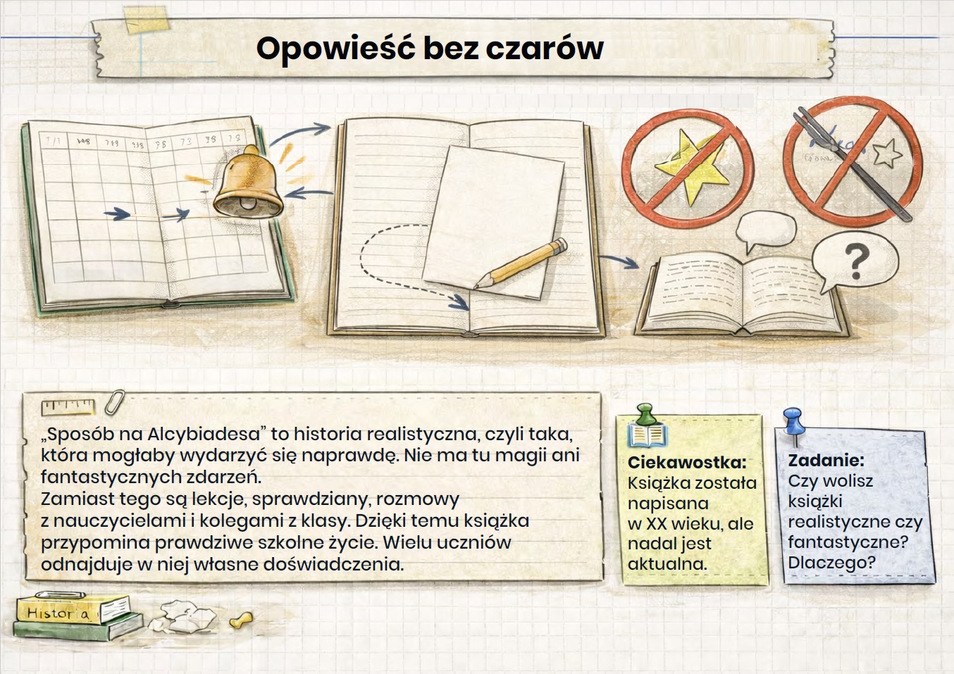 📚 Gazetka szkolna – „Sposób na Alcybiadesa” to aż 15 kart PDF gotowych do druku! Odkryj szkolną klasykę pełną humoru i trafnych obserwacji! Sposób na Alcybiadesa to zabawna i mądra opowieść o uczniach, nauczycielach oraz „sposobach”, które czasem prowadzą do nieoczekiwanych wniosków.