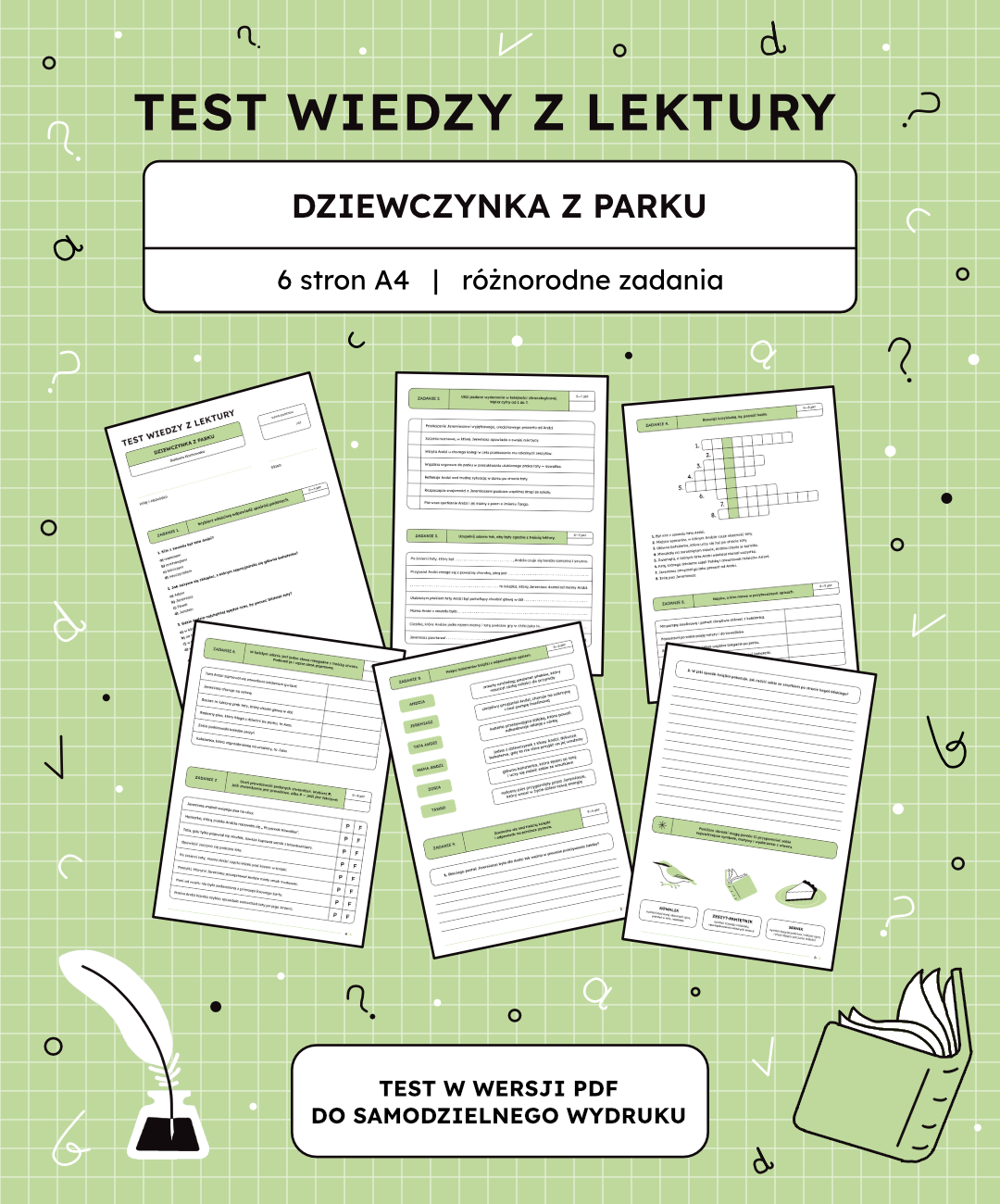 📘 Test z lektury „Dziewczynka z parku” – gotowy do druku (PDF). Przygotowałam nowy test lekturowy z książki „Dziewczynka z parku”, który składa się z aż 6 stron A4 w formacie PDF. To gotowy materiał, który w przejrzysty i uporządkowany sposób pozwala sprawdzić znajomość fabuły, bohaterów oraz emocjonalnego przesłania utworu.