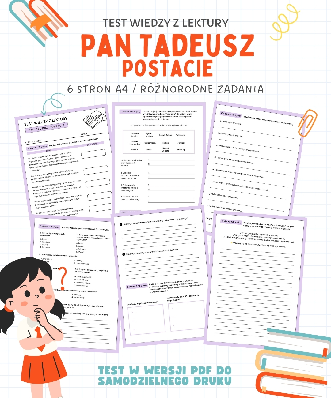 Test: Pan Tadeusz – postacie – 6 stron A4