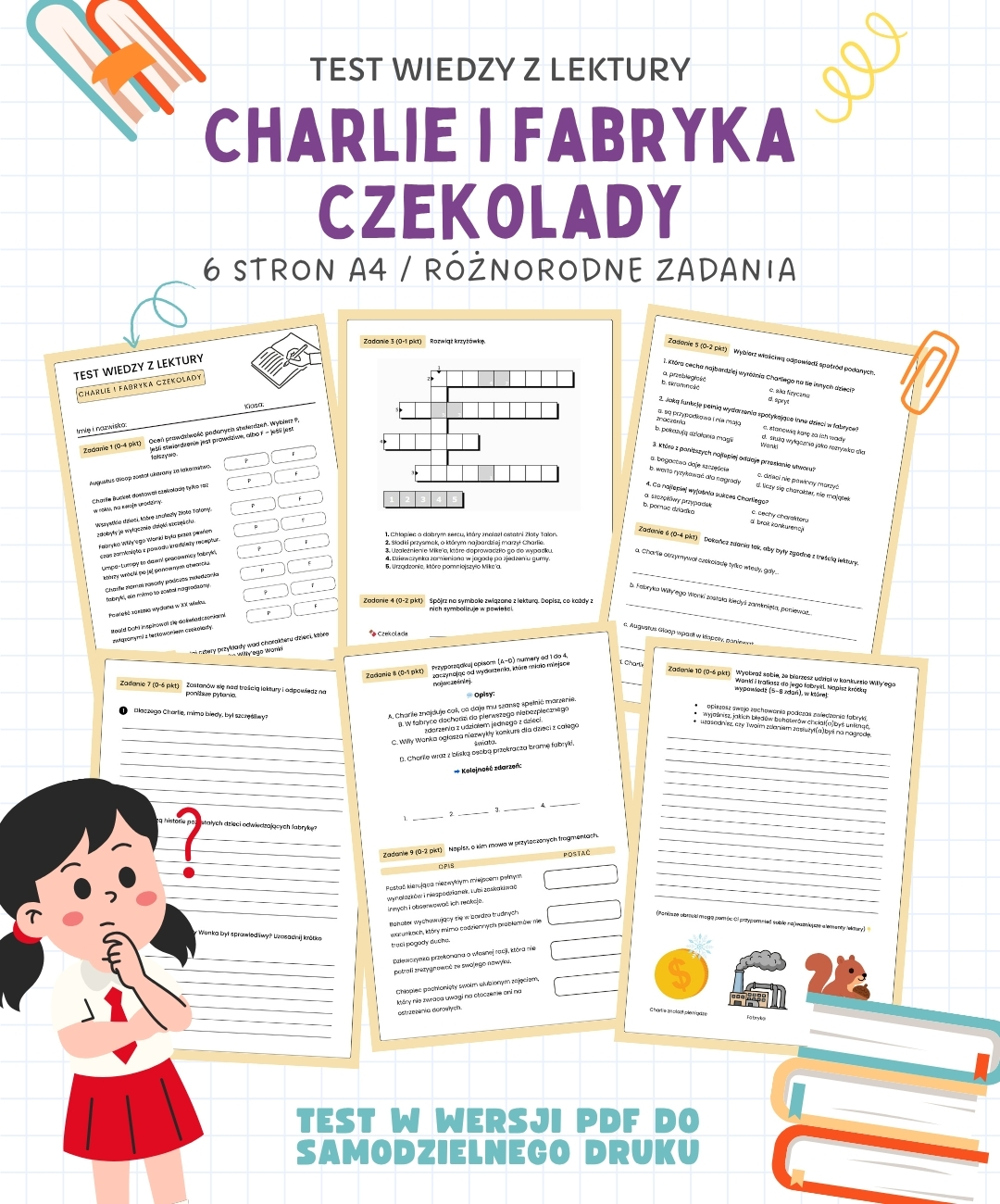 TEST z lektury Charlie i fabryka czekolady – 6 stron A4 (PDF)