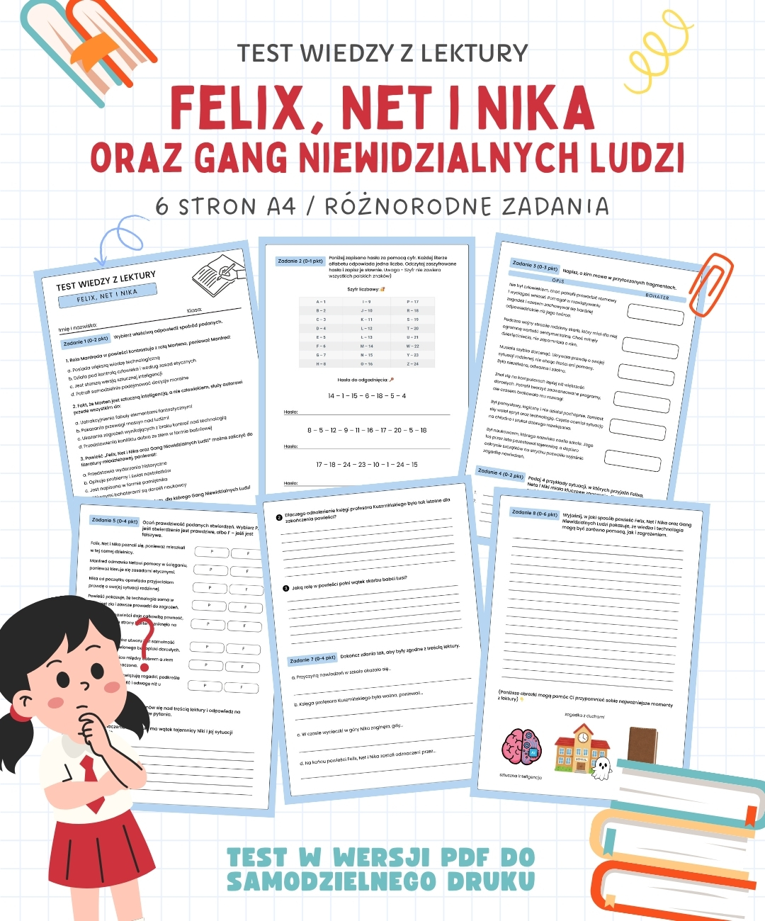 Test z lektury: Felix, Net i Nika oraz Gang Niewidzialnych Ludzi - aż 6 stron A4