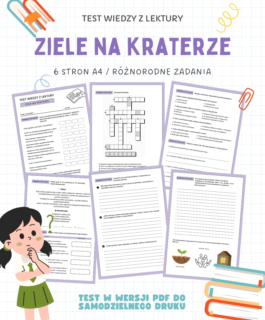 📘 Test z lektury „Ziele na kraterze” – gotowy do druku (aż 6 strona A4 w formacie PDF)