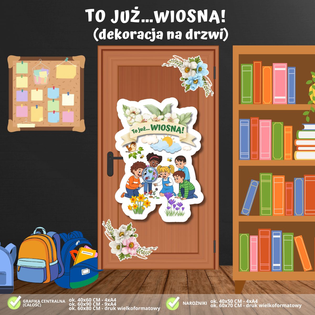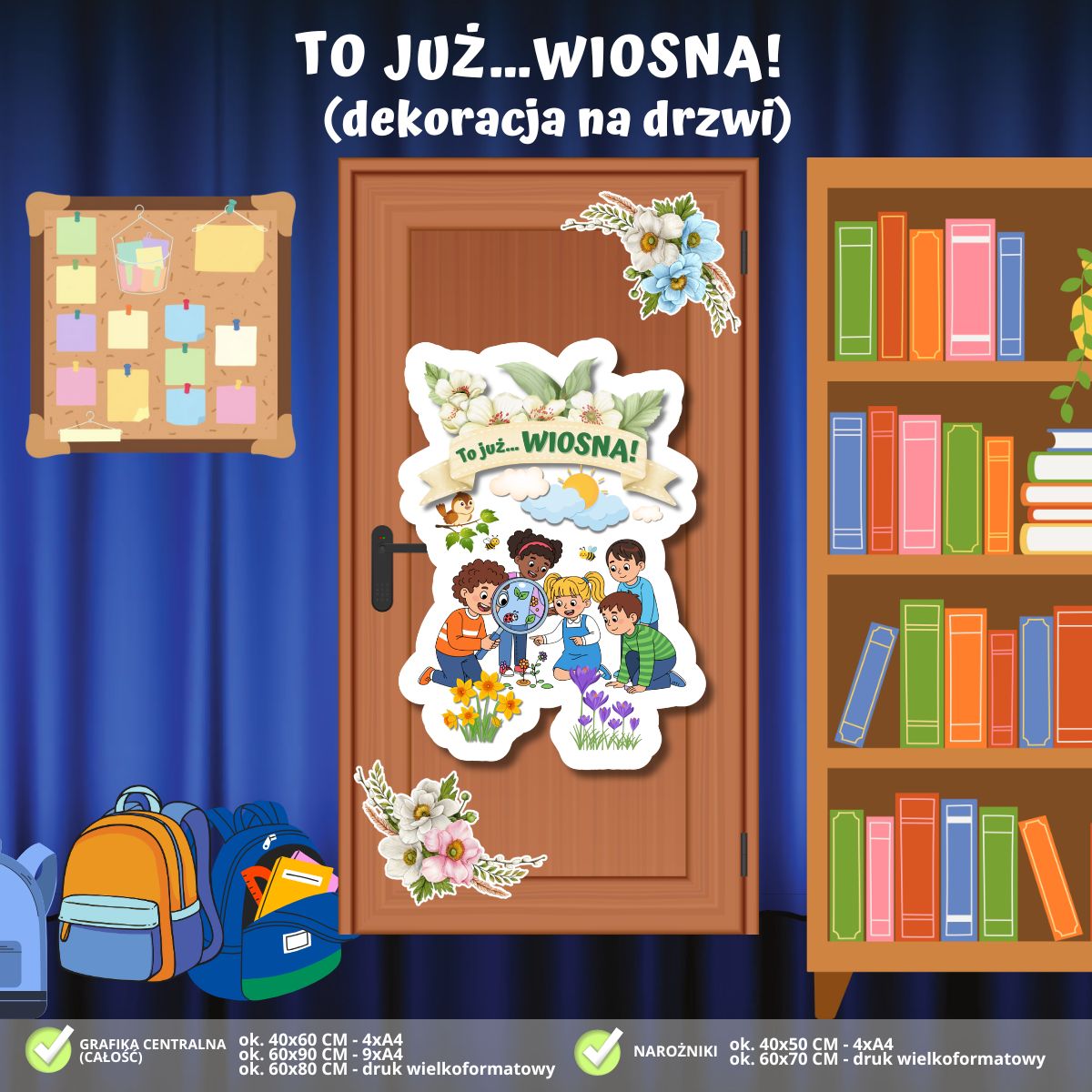 - Wyraźny napis: „To już… WIOSNA!” umieszczony na dynamicznej kwiatowej grafice, która stanowi czytelny i estetyczny punkt centralny dekoracji.