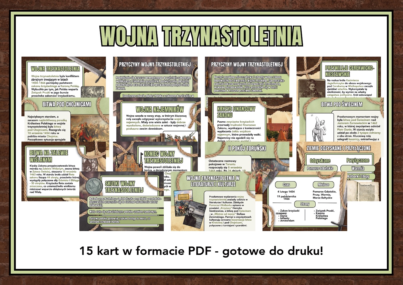 Gotowa gazetka szkolna w formacie PDF: Wojna trzynastoletnia (1454–1466). Szukasz czytelnych i atrakcyjnych materiałów historycznych? Ta gazetka szkolna poświęcona wojnie trzynastoletniej to aż 15 kart PDF, które w przystępny sposób przybliżają jeden z najważniejszych konfliktów w dziejach Polski 🇵🇱⚔️