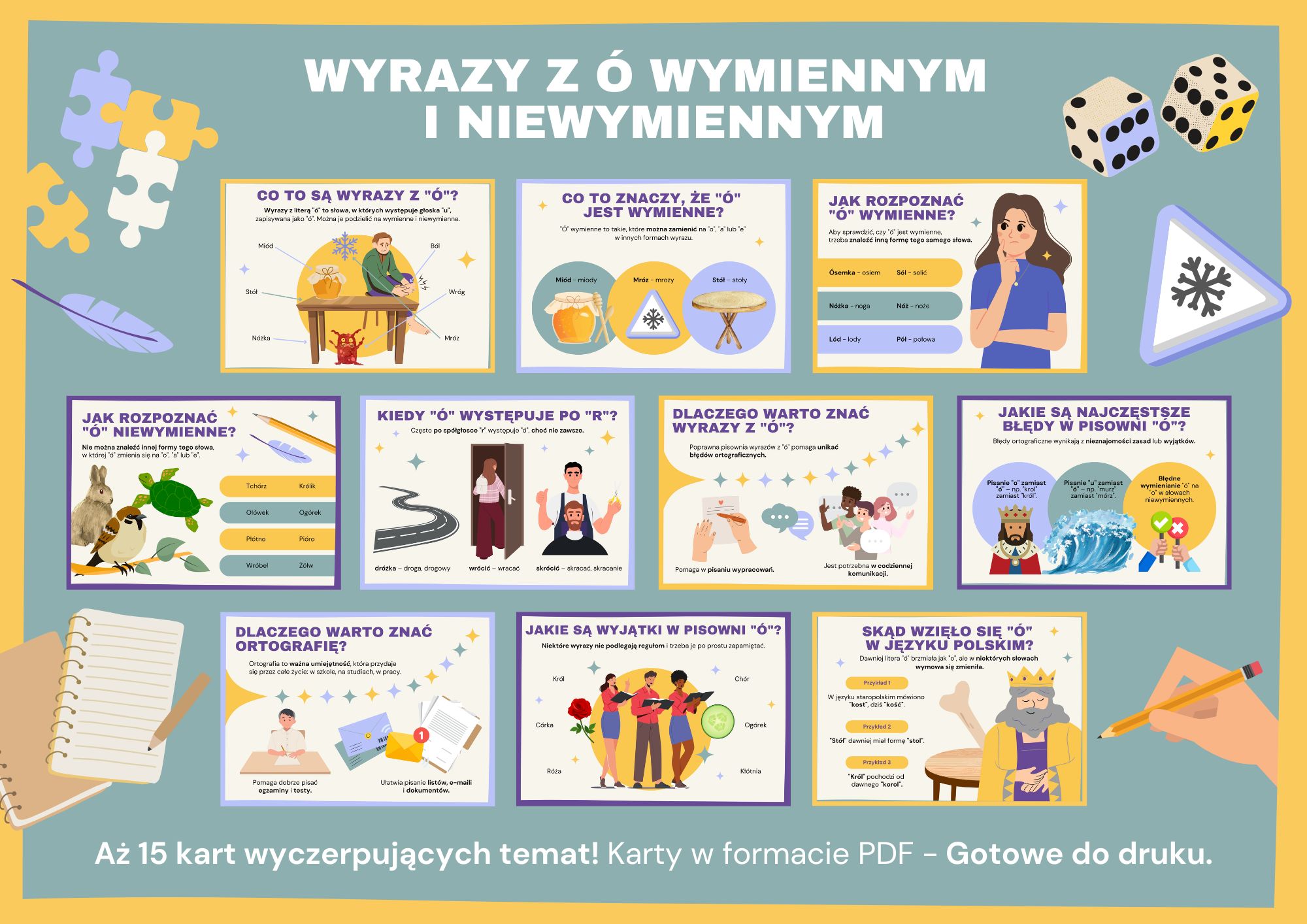 👉Przygotowaliśmy dla Was edukacyjną gazetkę szkolną: Wyrazy z „ó” wymiennym i niewymiennym. To zestaw aż 15 starannie opracowanych kart PDF w formacie A4, gotowych do druku i natychmiastowego wykorzystania.
