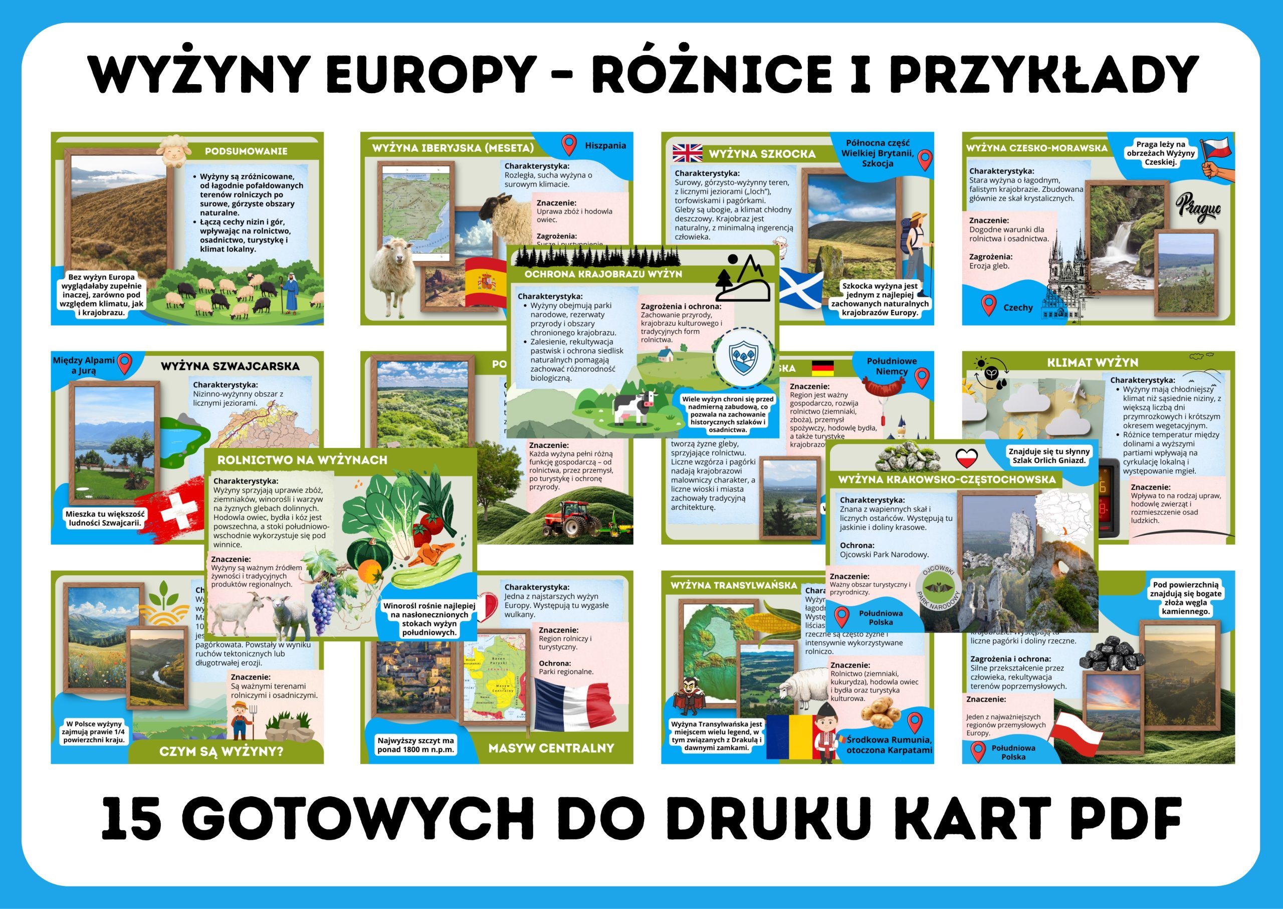 📄 Zestaw zawiera aż 15 kart PDF, gotowych do wydruku i wykorzystania jako: