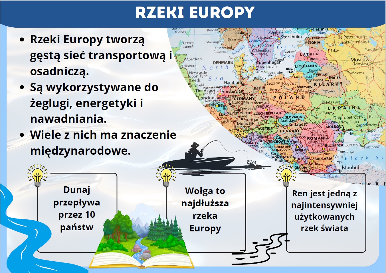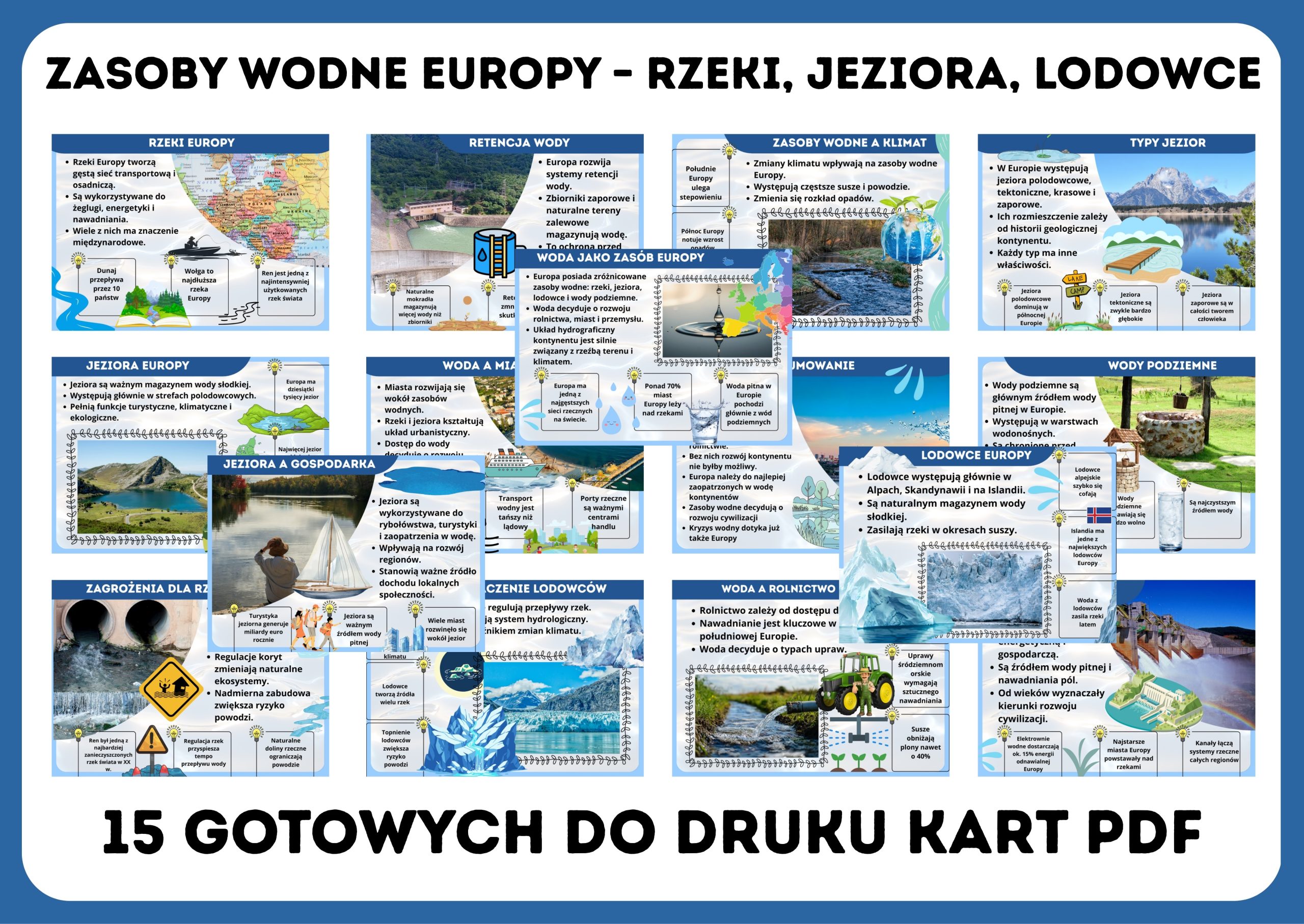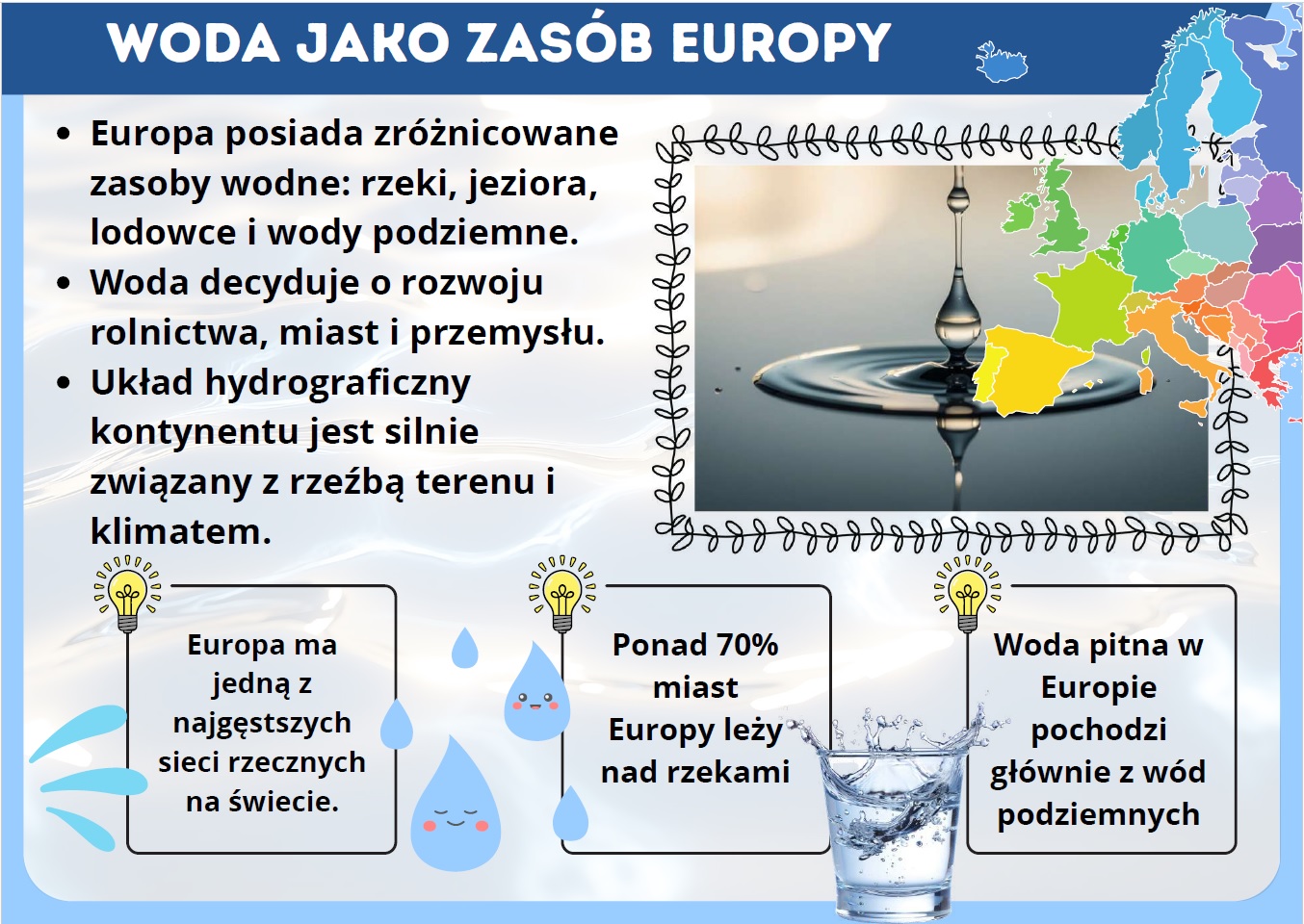 - Zasoby wodne Europy – rzeki, jeziora, lodowce – gazetka szkolna