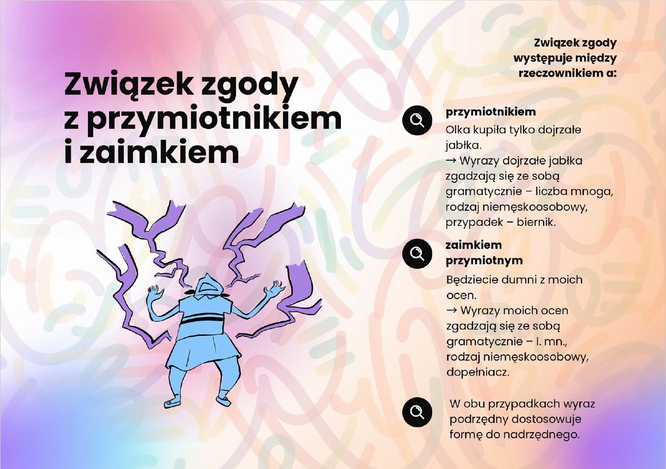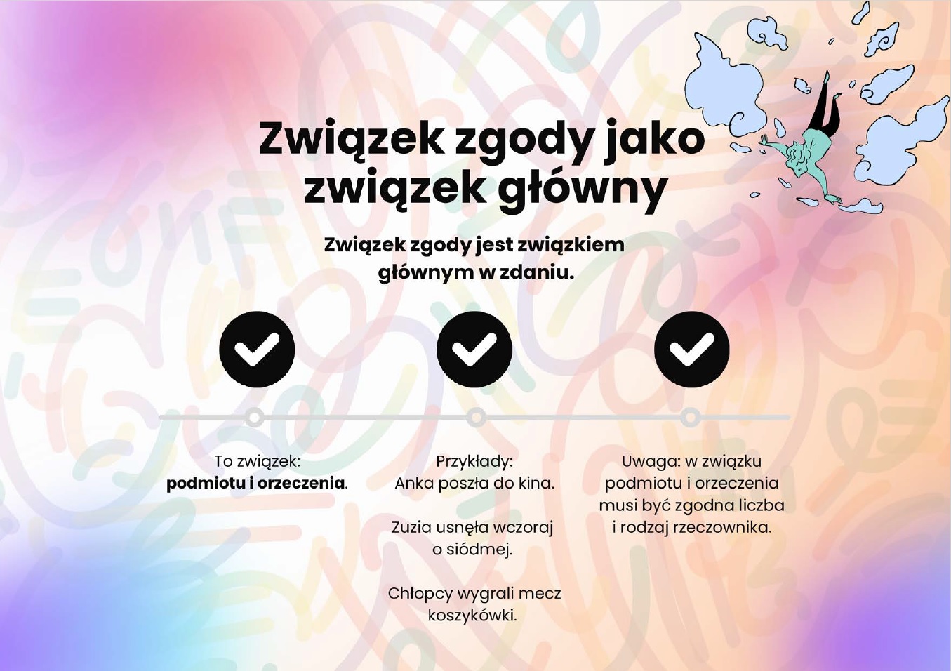 • ✅ Związek zgody z przymiotnikiem i zaimkiem